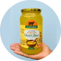 That’s why at A2Farm, we follow the traditional Bilona method, hand-churning curd from pure A2 cow and buffalo milk to extract butter, and then slowly heating it to make rich, aromatic Desi Ghee just like our grandmothers used to make.